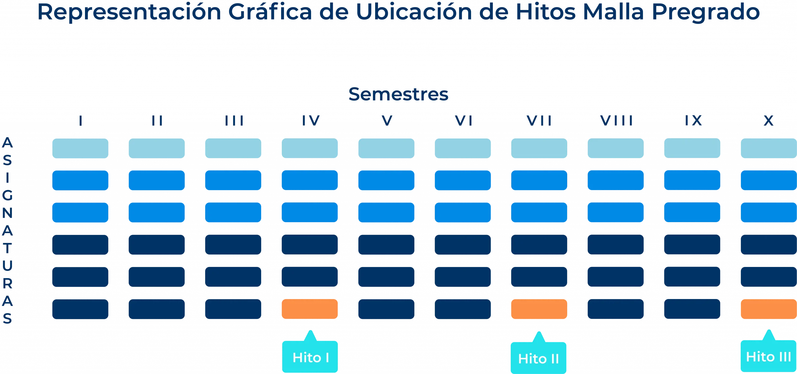 Los Hitos Evaluativos, tienen por objetivo medir la concreción del Perfil de Egreso de manera progresiva, para así poder realizar acciones para la mejora académica en un tiempo coherente antes del egreso.